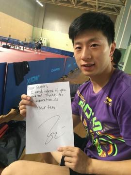 今世界ランク1位の馬龍選手がメッセージとサインをくれました!