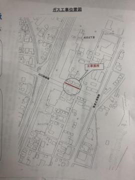 6/20〜約一週間夜間9時頃〜SOLAから信号までの間の道路でガス工事があるそうです。