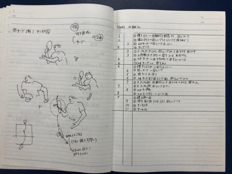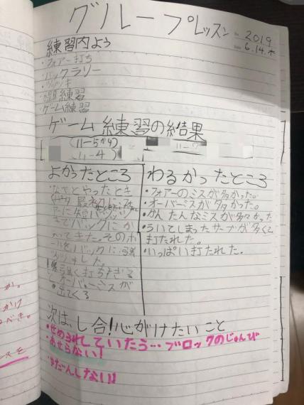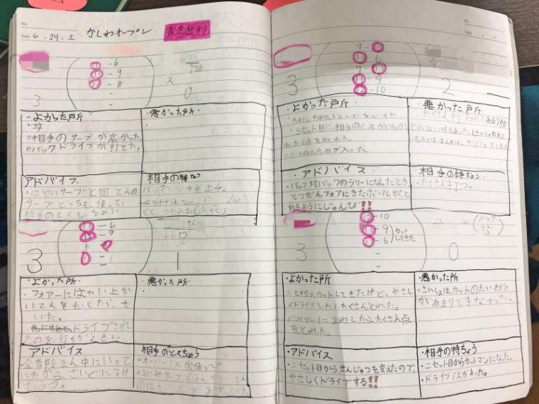 試合の日もただ結果を書くではなくて、相手の戦型や特徴を記入しておくと再度当たった時に思い出しやすく、1球目から計画通り戦う事が出来ます。