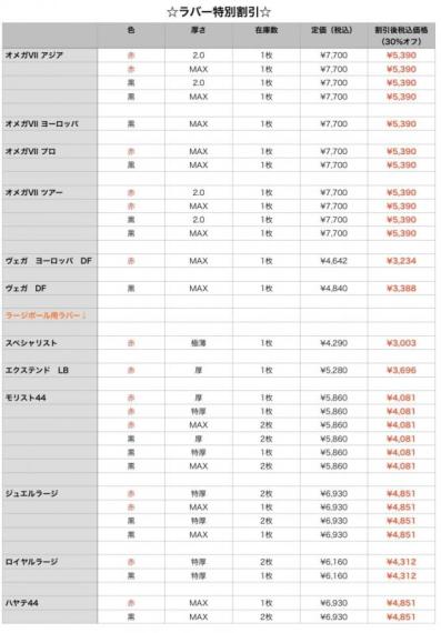 ★以下のリストに載っているラバーに限り、定価から30%OFF!!